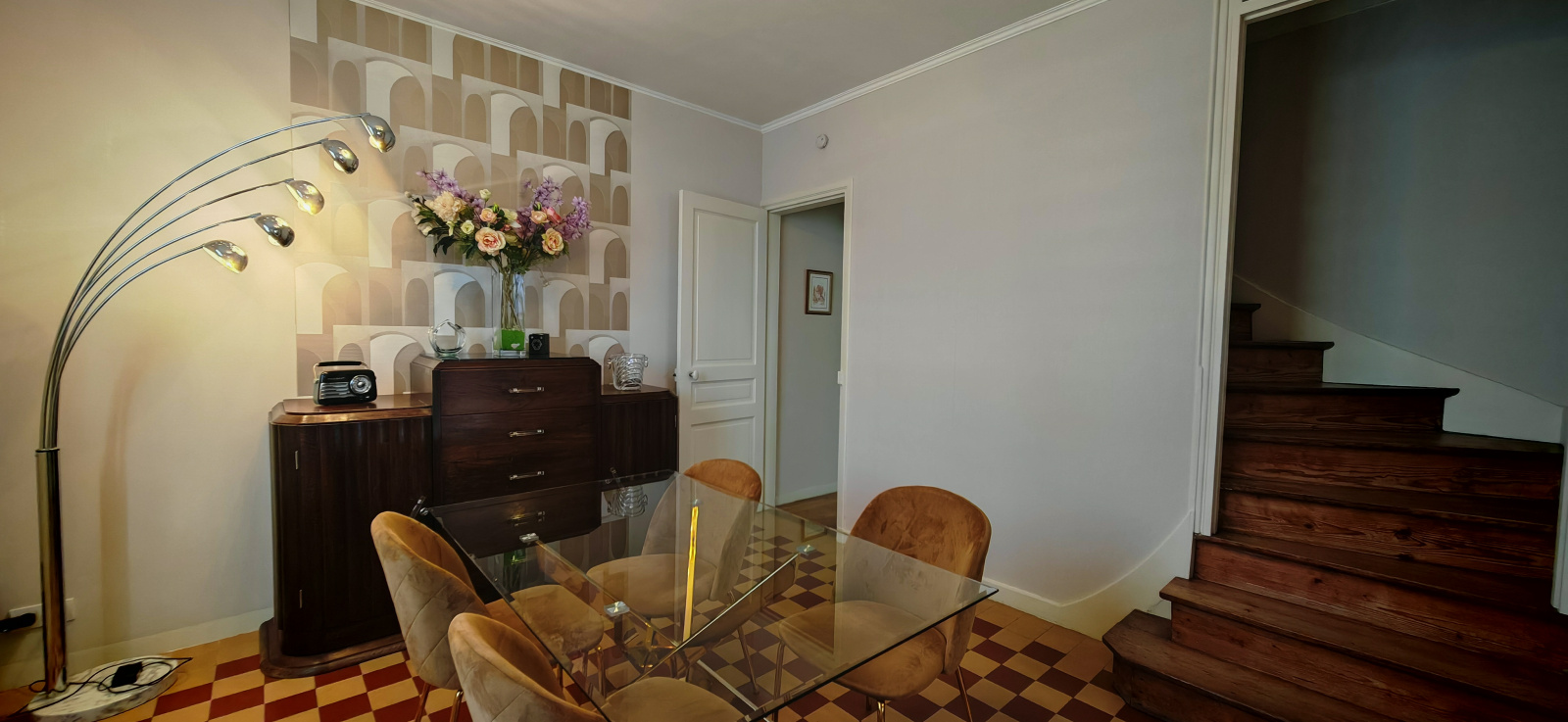 Dès l’entrée, vous serez séduit par ses espaces lumineux et sa décoration soignée. La cuisine ouverte sur la salle à manger crée une atmosphère conviviale, tandis que le salon invite à la détente dans une ambiance élégante et chaleureuse avec une agréable vue sur le jardin