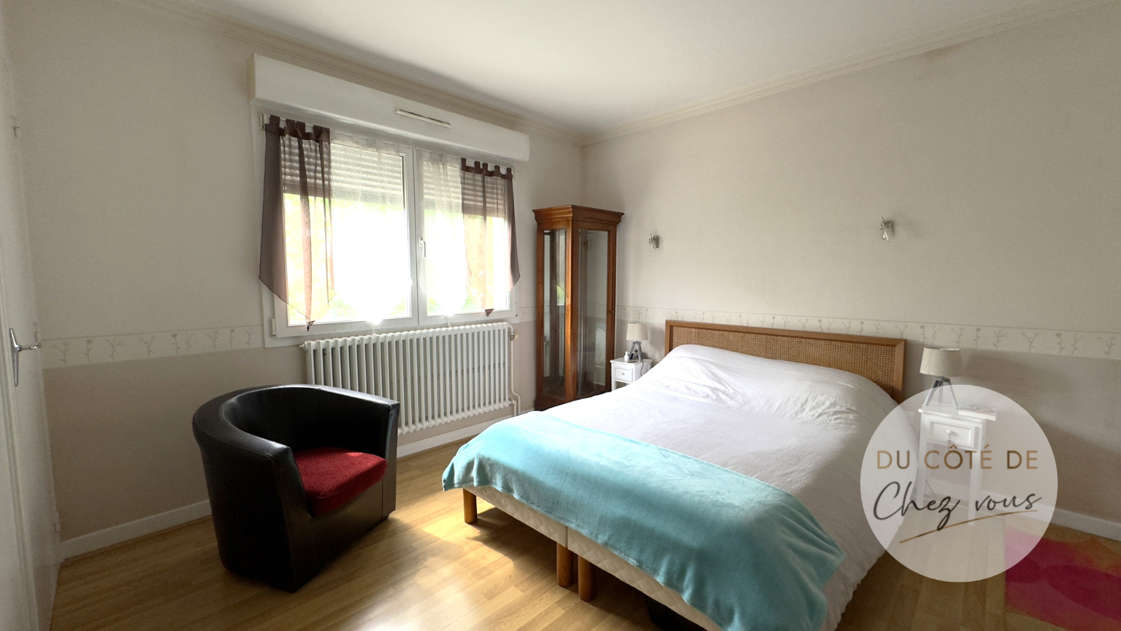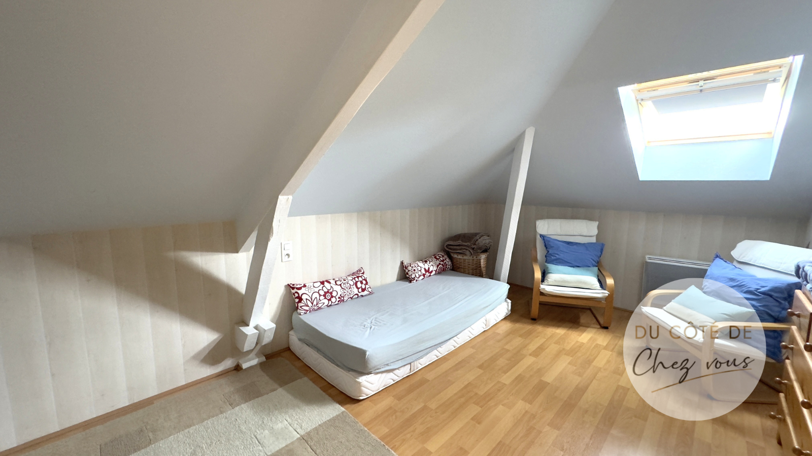 A l’étage, elle propose 2 chambres d’enfants et une salle d’eau