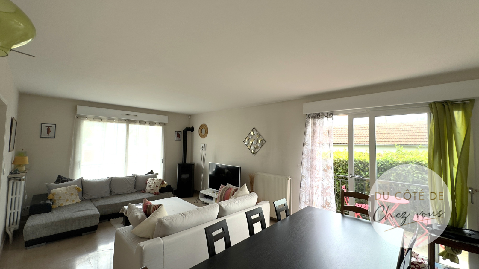 Dès l’entrée, vous serez accueillis par une belle entrée, puis dans un double séjour lumineux agrémenté d’un poêle à granulés, une cuisine aménagée et équipée de placards, ensuite vous trouverez 2 chambres et une salle de bains.