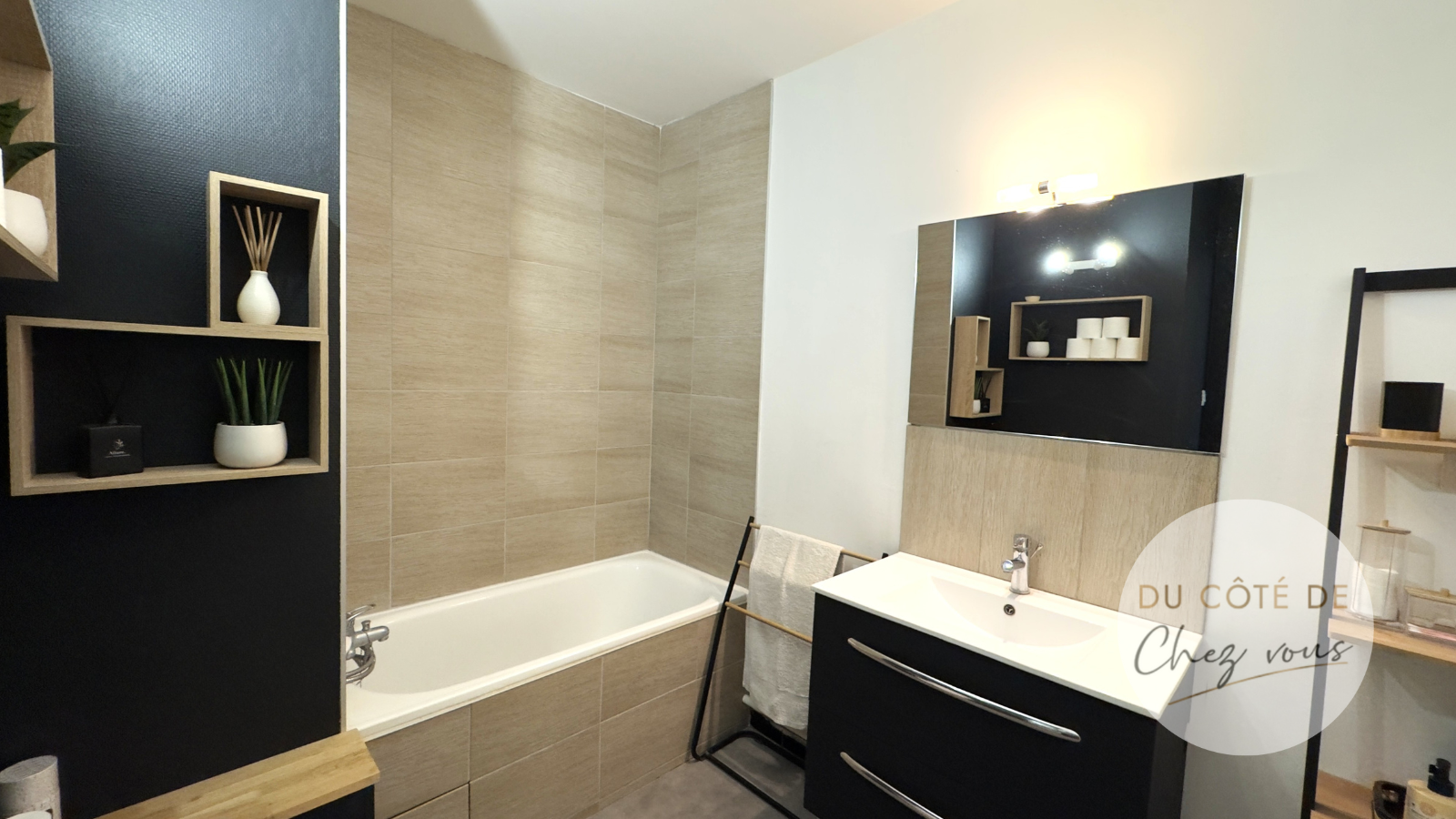 L’appartement se compose d’une cuisine séparée, aménagée et partiellement équipée, prête à accueillir vos talents culinaires. Le salon est très confortable. La salle de bain, à la fois moderne et raffinée, vient compléter ce lieu avec une touche contemporaine qui saura vous charmer.