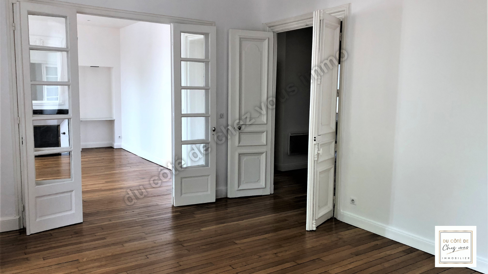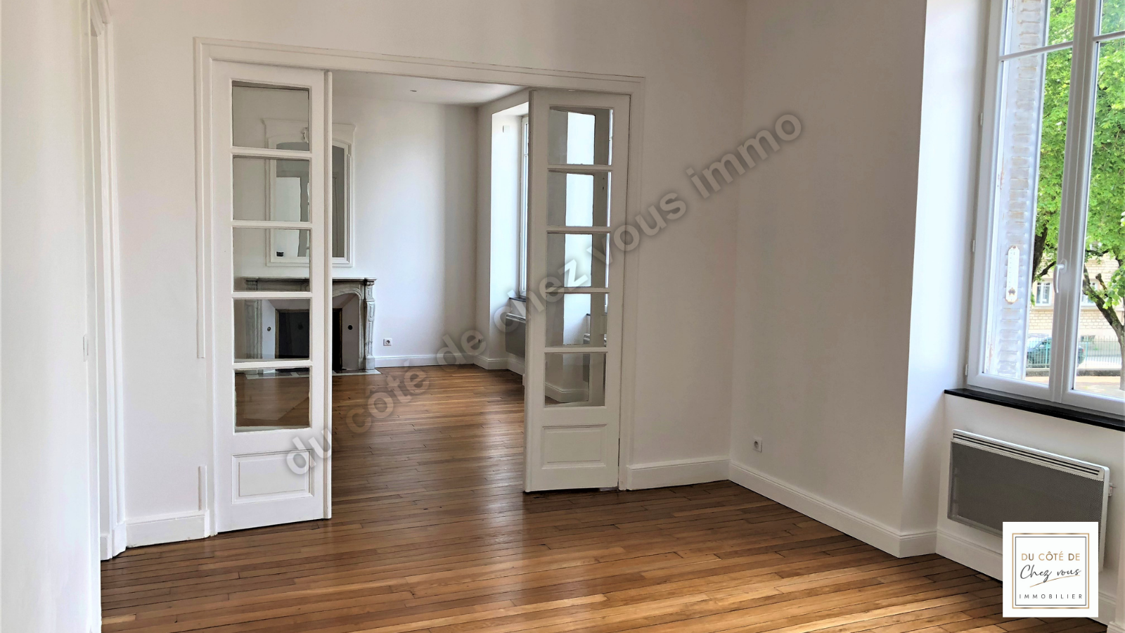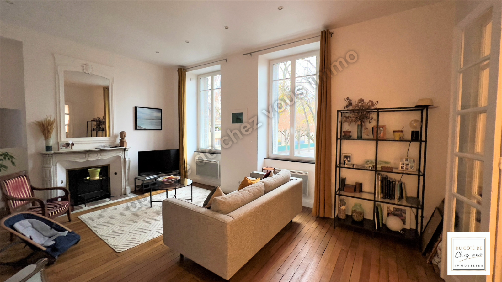 Magique ! En exclusivité ! Du Côté de Chez Vous Immobilier vous propose un magnifique appartement de 98.35 m2 carrez au sein d’une belle bâtisse idéalement située quartier paix, proche de toutes commodités, écoles et de la gare SNCF. Ce bien de caractère sis au 1er étage sans ascenseur, offre une spacieuse entrée, un élégant séjour parqueté de 43.68 m2 bénéficiant de superbes cheminées, une cuisine aménagée et équipée, deux chambres et une salle de bains avec douche et baignoire.