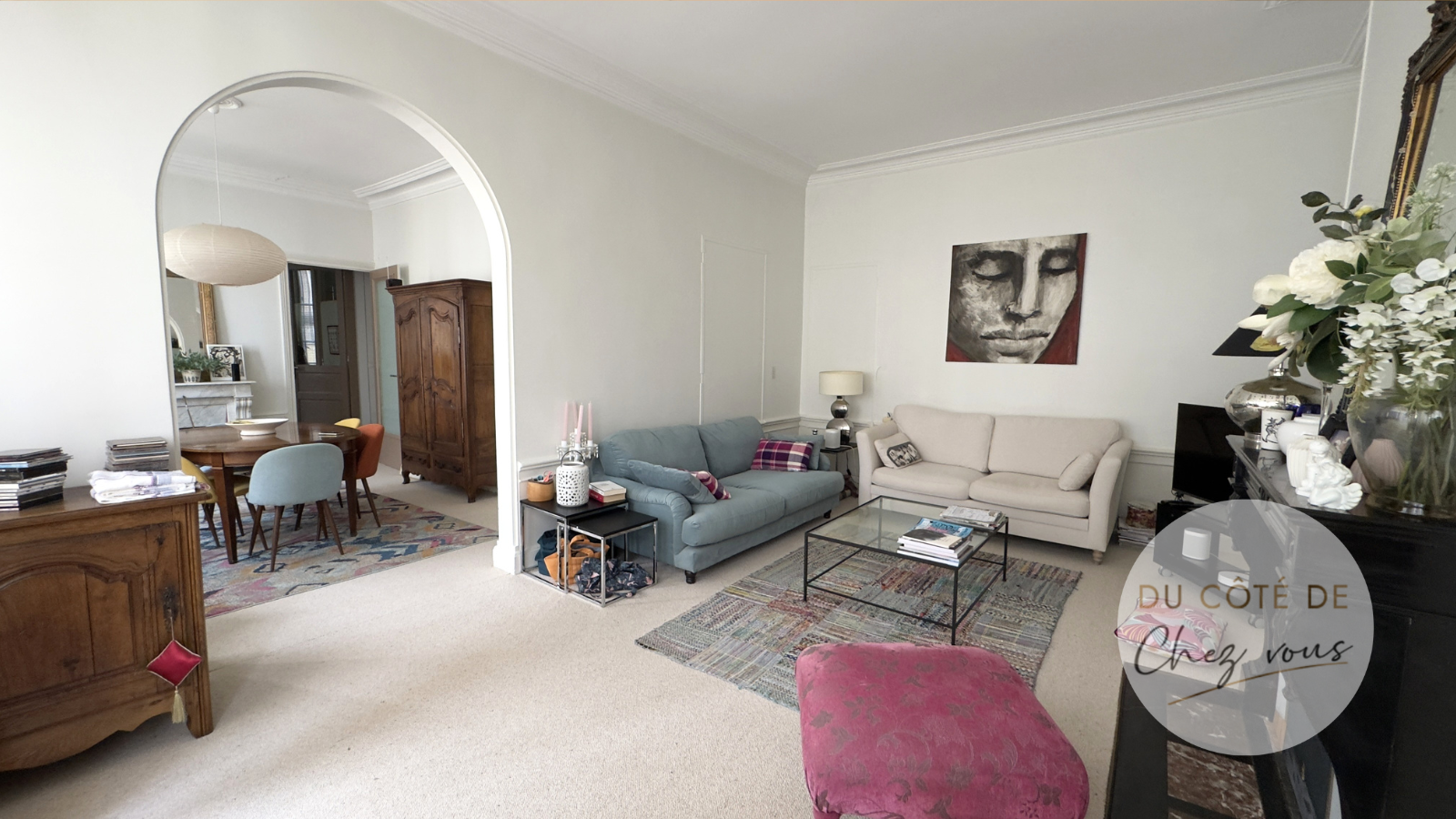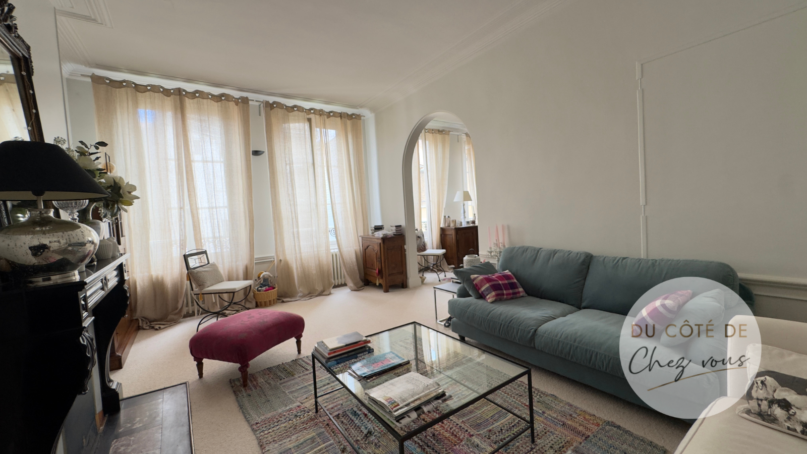 Dès la belle entrée, le charme opère : Un vaste séjour lumineux de 37,60 m² où l’on imagine aisément de beaux moments de convivialité.