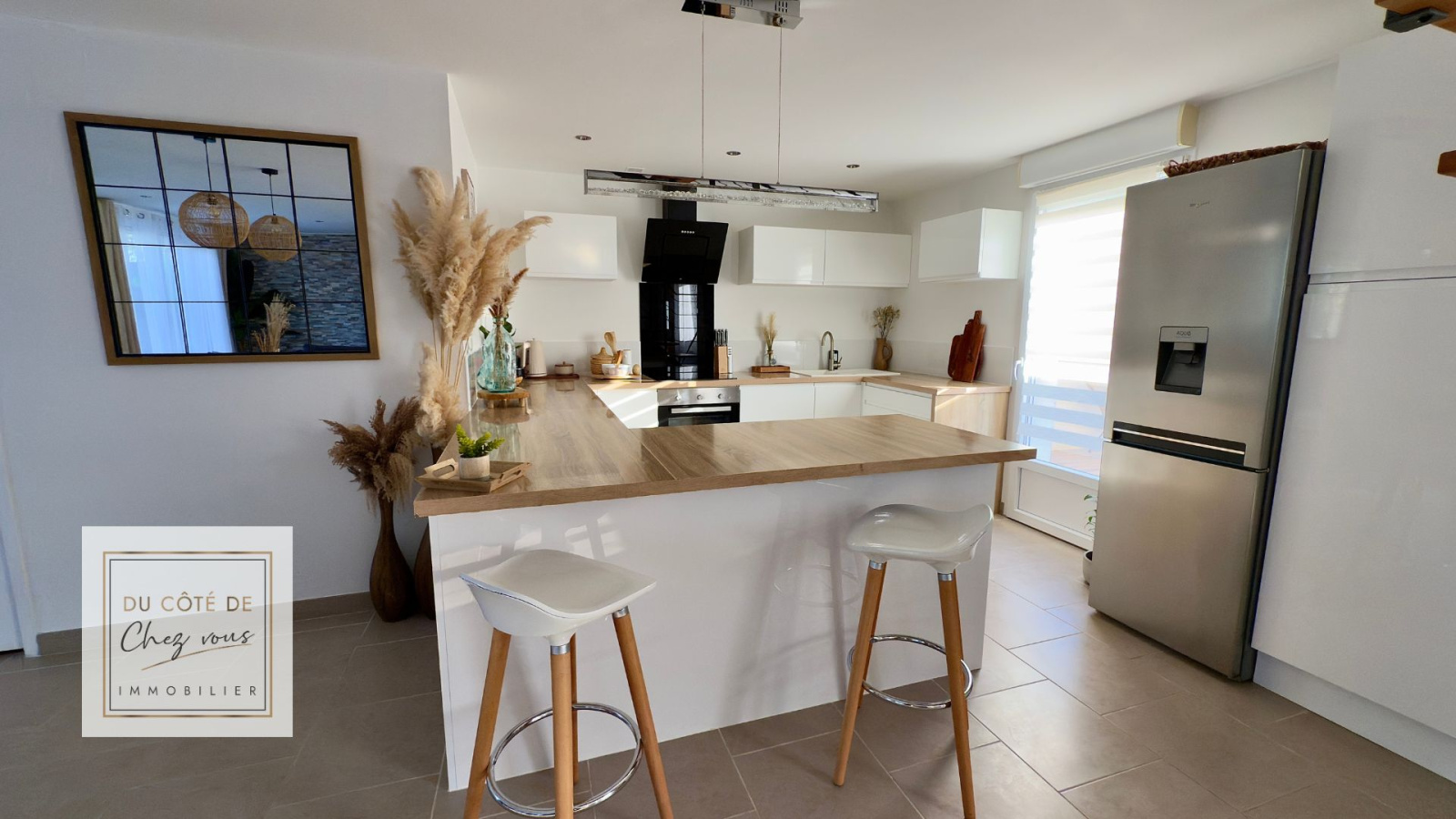 Dès l'entrée, on ressent que la maison est bien entretenue. Tout est propre, rangé et fonctionnel. La disposition est agréable et accueillante : une entrée avec placard, un grand salon-séjour où l'on peut déjà s'imaginer les moments partagés. Une cuisine ouverte, aménagée et équipée, avec accès direct à la terrasse. Ce rez-de-chaussée a été pensé pour le quotidien, avec une buanderie pratique et des WC séparés.