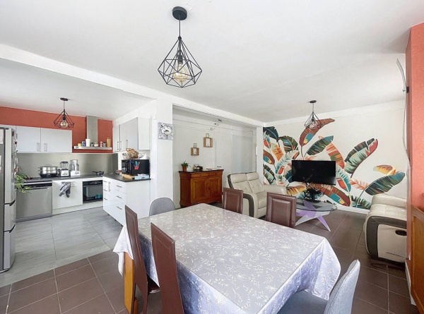 Elle propose un bel espace de vie lumineux d’environ 35 m² avec cuisine ouverte moderne et équipée.