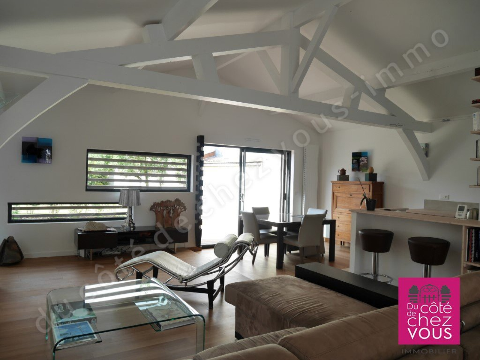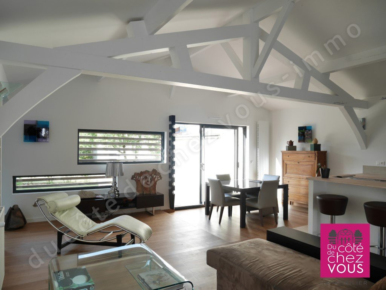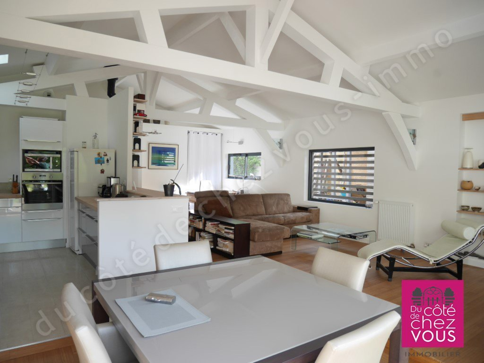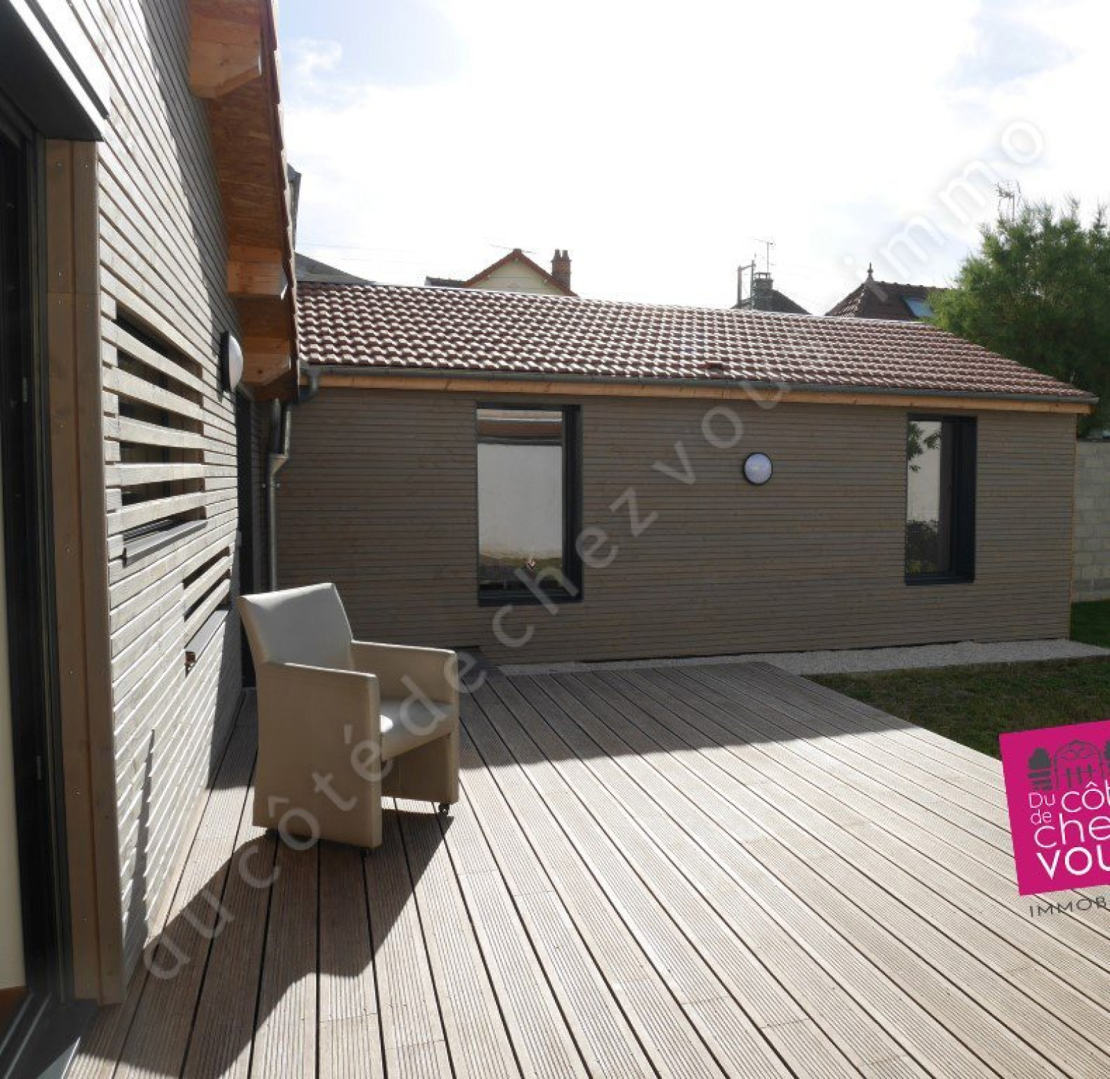 Cette belle maison contemporaine située à Sainte Savine, très proche de la gare SNCF de Troyes offre une sublime pièce à vivre avec une cuisine aménagée et équipée, une chambre d’enfant avec son espace couchage en mezzanine, une autre chambre, une belle salle d’eau avec douche à l’italienne et une magnifique suite parentale avec coin chambre, salon et salle de bains. Cette villa à ossature bois, laisse entrer la lumière par d’originales fenêtres à claire-voie et une grande baie vitrée. Dès l’entrée, le sas ouvre sur le grand jardin ensoleillé et nous emmène dans un lieu calme au cœur de la ville. La maison possède également une petite dépendance. Une grande terrasse complète cet ensemble atypique, économique et écologique sans garage sur un beau terrain d’environ 650 m2, proche des commerces avec ou sans voiture. Un bien absolument unique présenté par votre agence immobilière du Côté de Chez Vous. Idyllique !