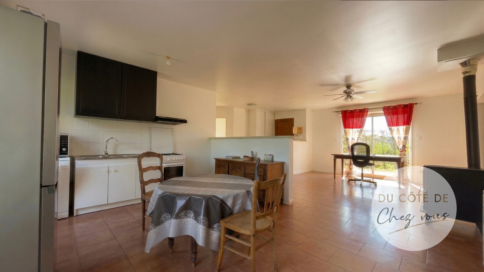 Côté confort, la maison allie le charme d'un chauffage au bois grâce à son poêle performant à la souplesse d'un système électrique.