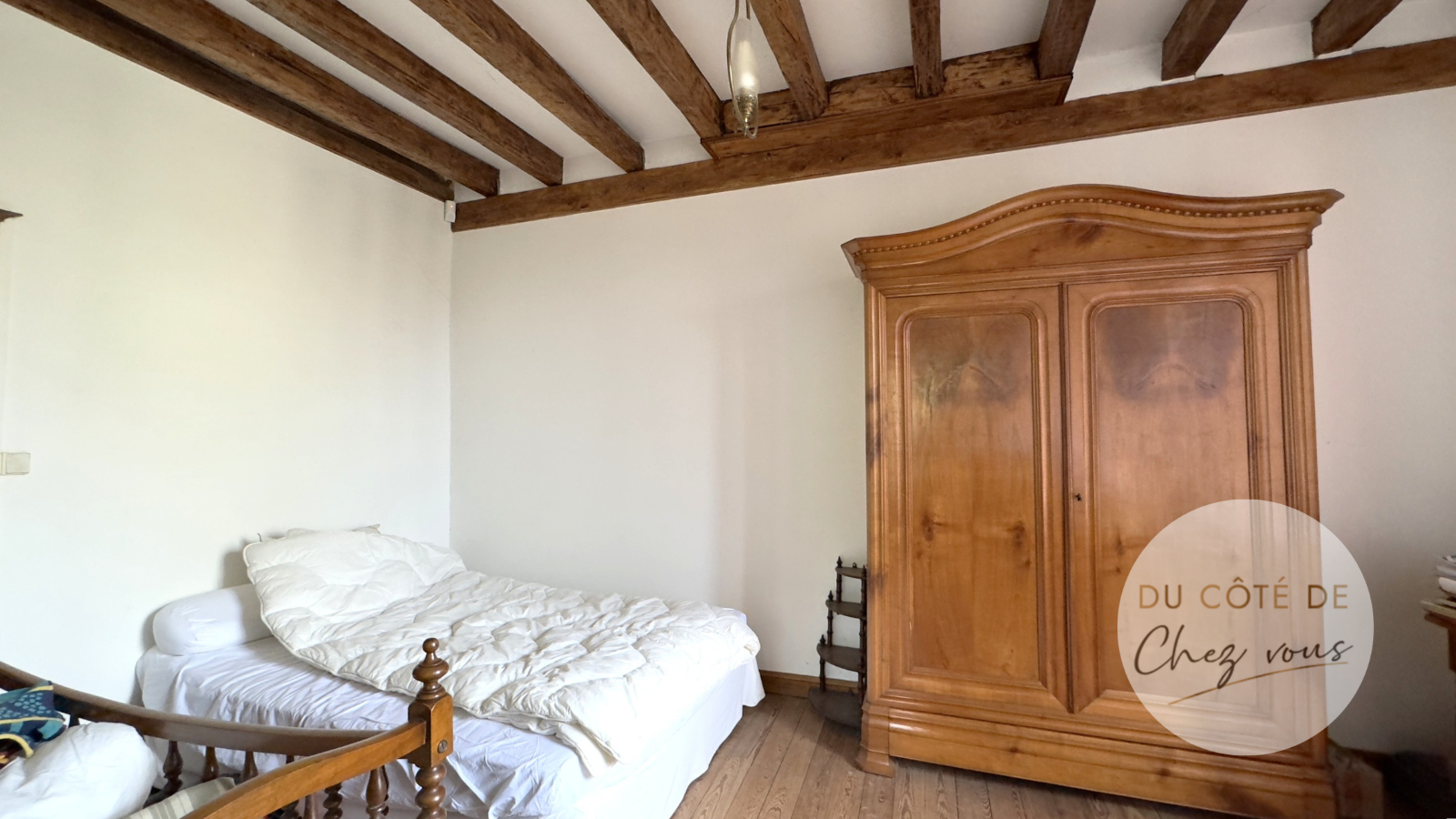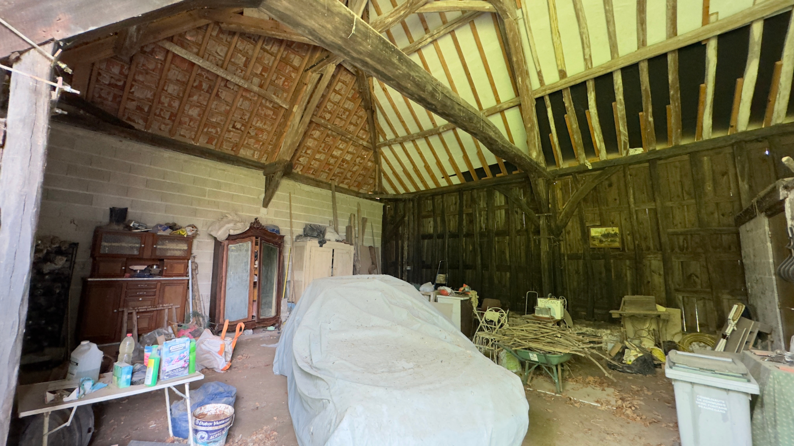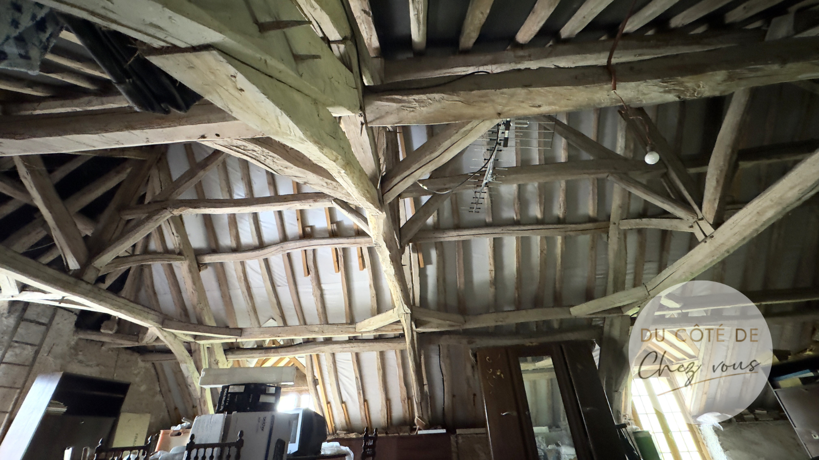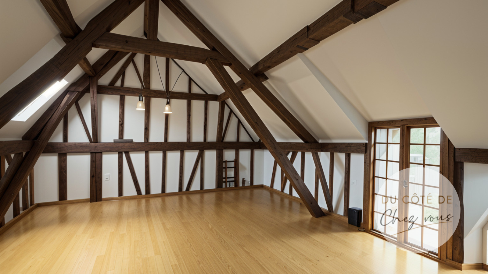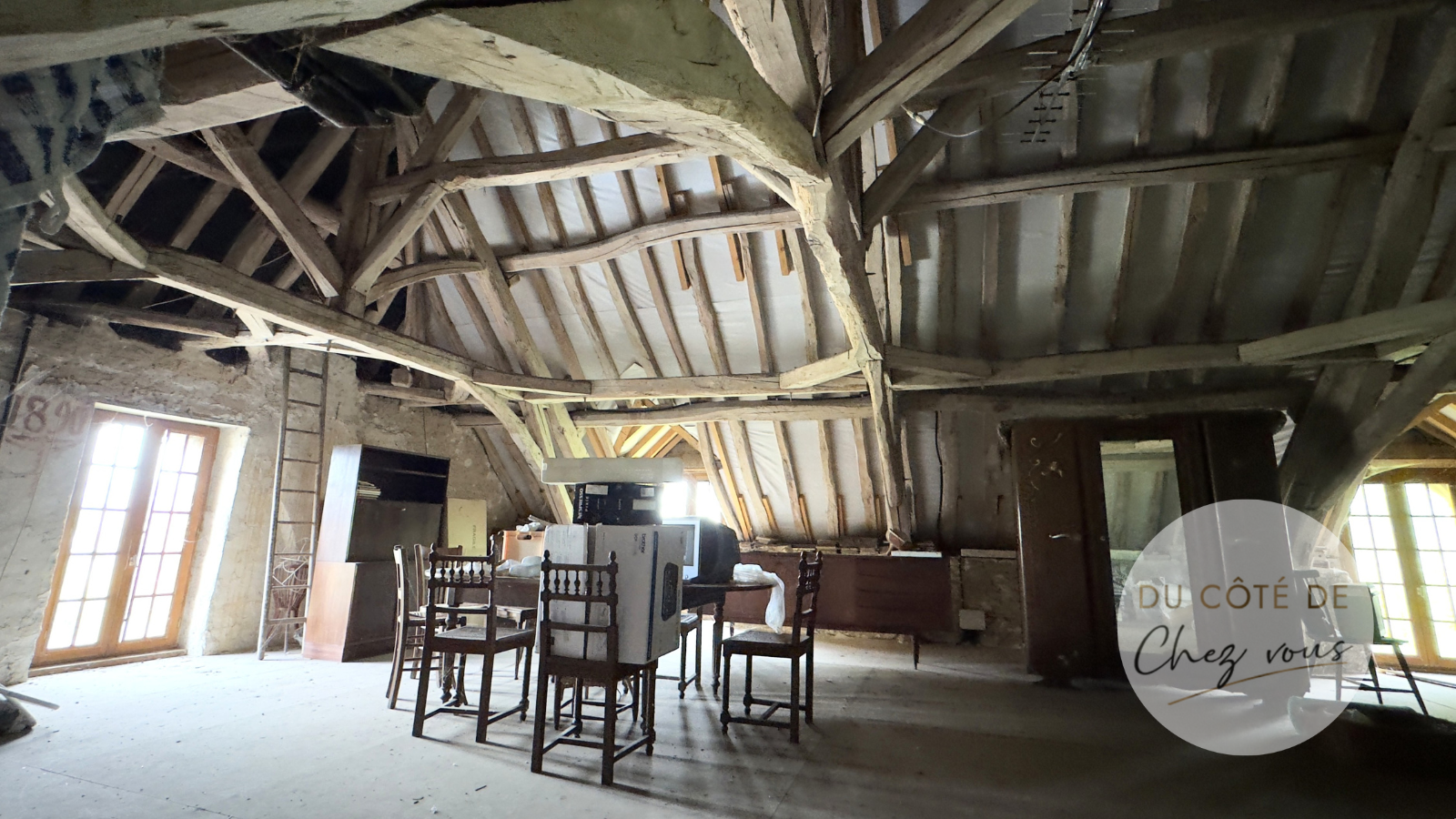 L'étage entier offre un potentiel d'aménagement infini, laissant libre cours à vos idées pour créer l'espace de vos rêves au charme indéniable avec les belles poutres apparentes.