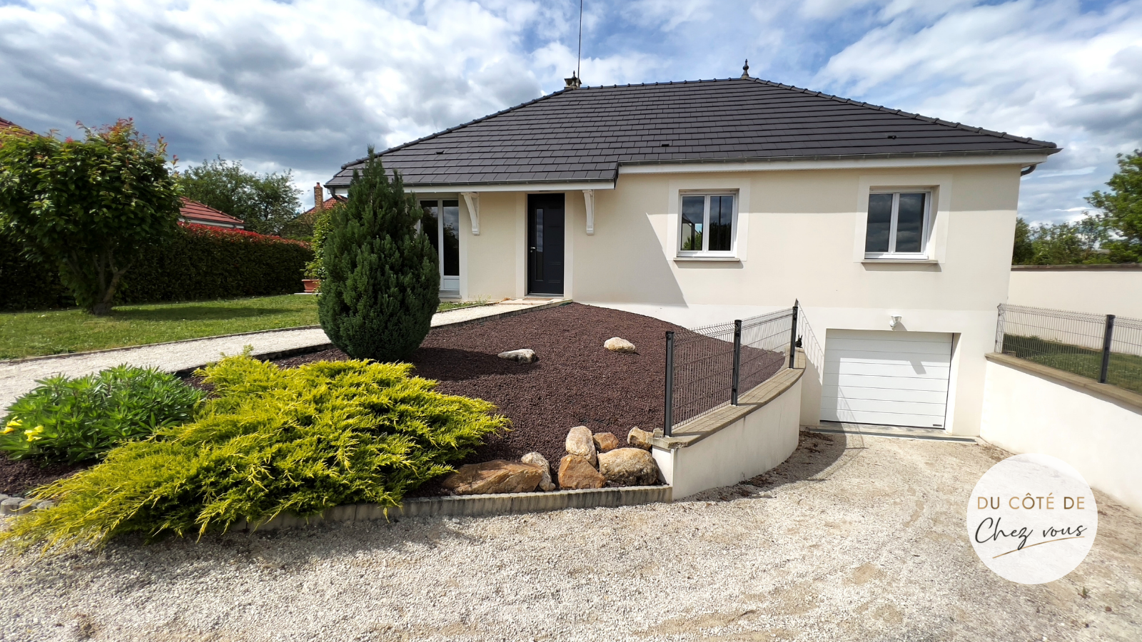 Vous cherchez une maison de plain-pied ? Cette belle villa d'environ 100 m2 située à Saint André les Vergers, proche de Troyes est orientée sud-ouest et offre une surface entièrement de plain-pied. Cette maison date de 2008, et profite d’une excellente isolation et de toutes les installations aux normes d’aujourd’hui. Elle comprend trois chambres, une salle de bains, deux WC, une cuisine aménagée et équipée ouverte sur un salon-séjour formant ainsi une belle pièce à vivre de 48 m2. La maison propose également un sous-sol total pouvant accueillir 2 véhicules, espace buanderie et rangements. Une grande terrasse orientée ouest dispose aussi d’une banne électrique. Ce bien a aussi l’avantage de vous proposer 3 types de chauffage : plancher chauffant, poêle à bois et climatisation. Un grand jardin paysagé de 661 m2 entoure également la maison. Proche des commerces et facile d’accès. Encore une magnifique opportunité à saisir présentée en exclusivité par votre agence Du Côté de Chez Vous Immobilier à Saint André les vergers !