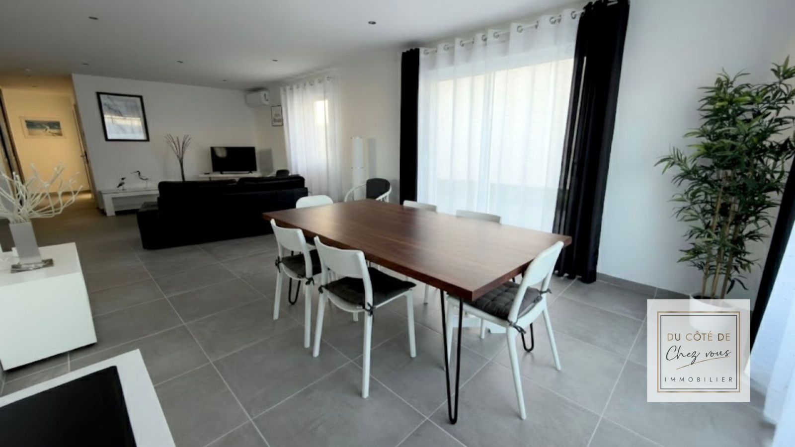 Dès l’entrée, le ton est donné avec une verrière élégante qui s’ouvre sur un séjour lumineux, sublimé par une superbe cuisine aménagée. Les matériaux de qualité et les finitions soignées confèrent à cet espace de vie une atmosphère à la fois contemporaine et chaleureuse. La maison bénéficie également d’équipements de domotique, offrant un confort de vie moderne et une gestion facilitée du quotidien, ainsi que d’une climatisation, idéale pour un bien-être optimal en toute saison.