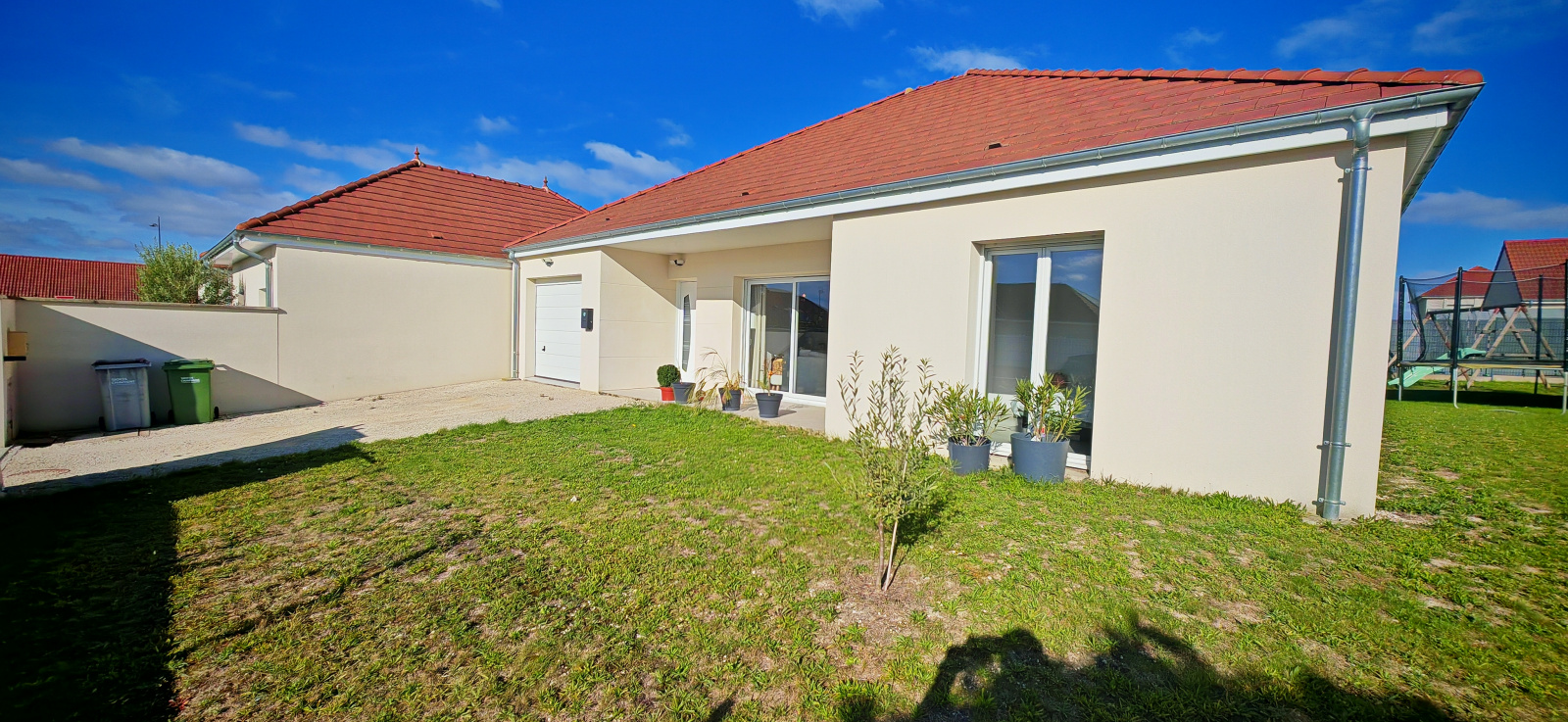 Les prestations sont de qualité : portail électrique, porte de garage motorisée, menuiseries double vitrage, chauffage au sol performant avec un DPE classé C, et jardin clos soigneusement entretenu.