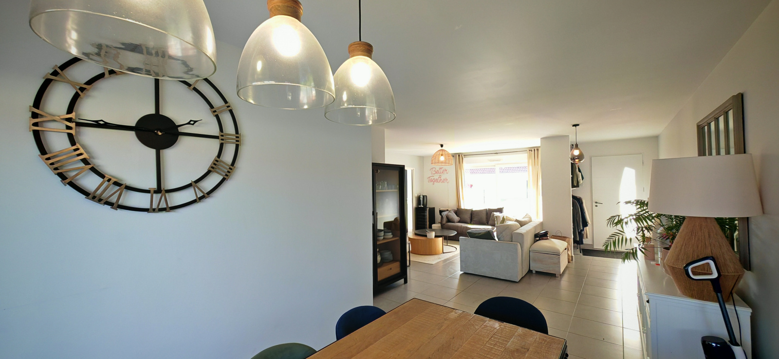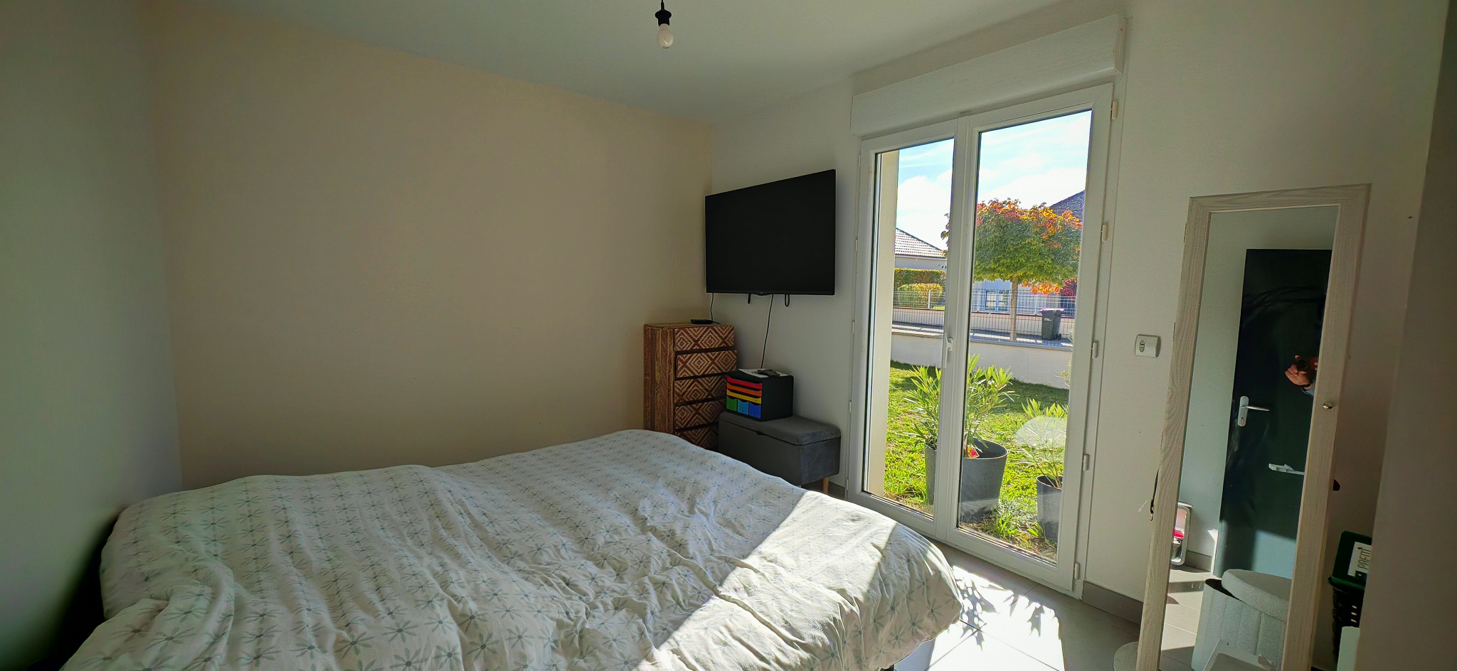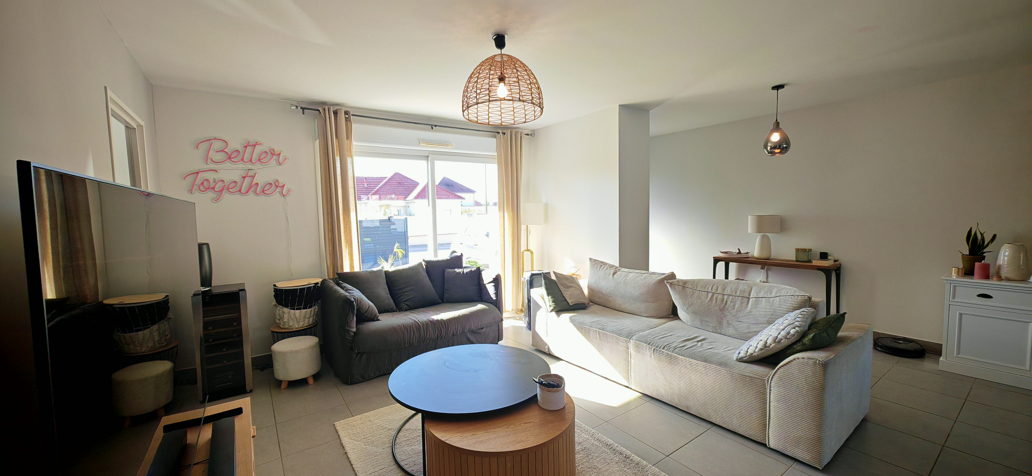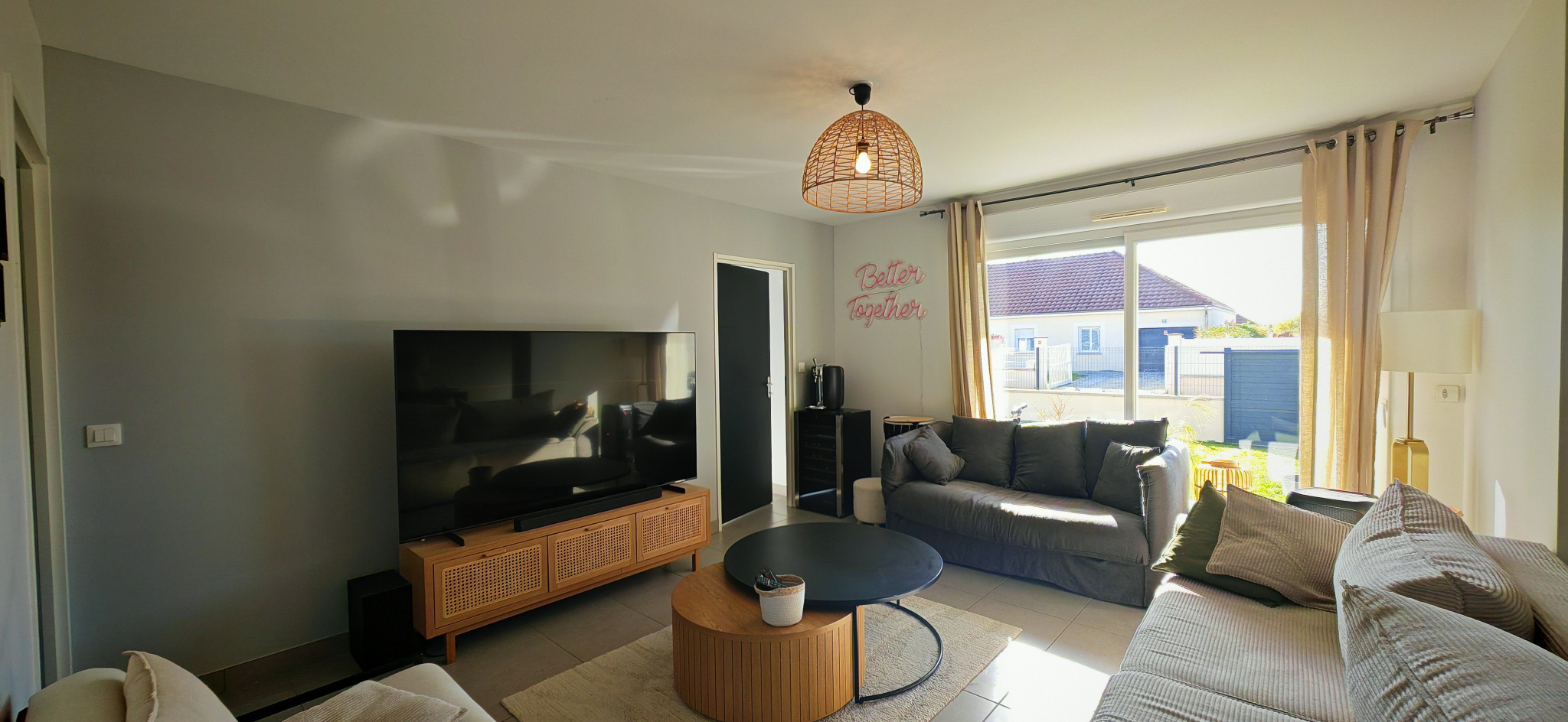 Dès l’entrée, la luminosité naturelle et les volumes généreux séduisent immédiatement. La pièce de vie, vaste et conviviale, comprend un salon-séjour avec cuisine ouverte, aménagée et équipée, donnant directement sur le jardin.