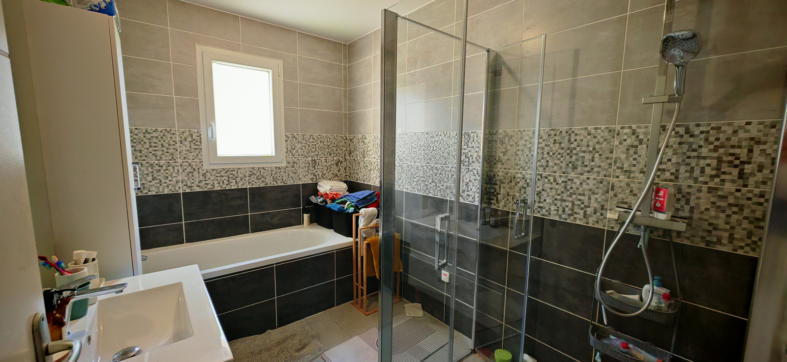 L’espace nuit se compose de quatre chambres confortables, d’une salle de bain moderne disposant à la fois d’une baignoire et d’une douche à l’italienne, ainsi que d’un WC indépendant.