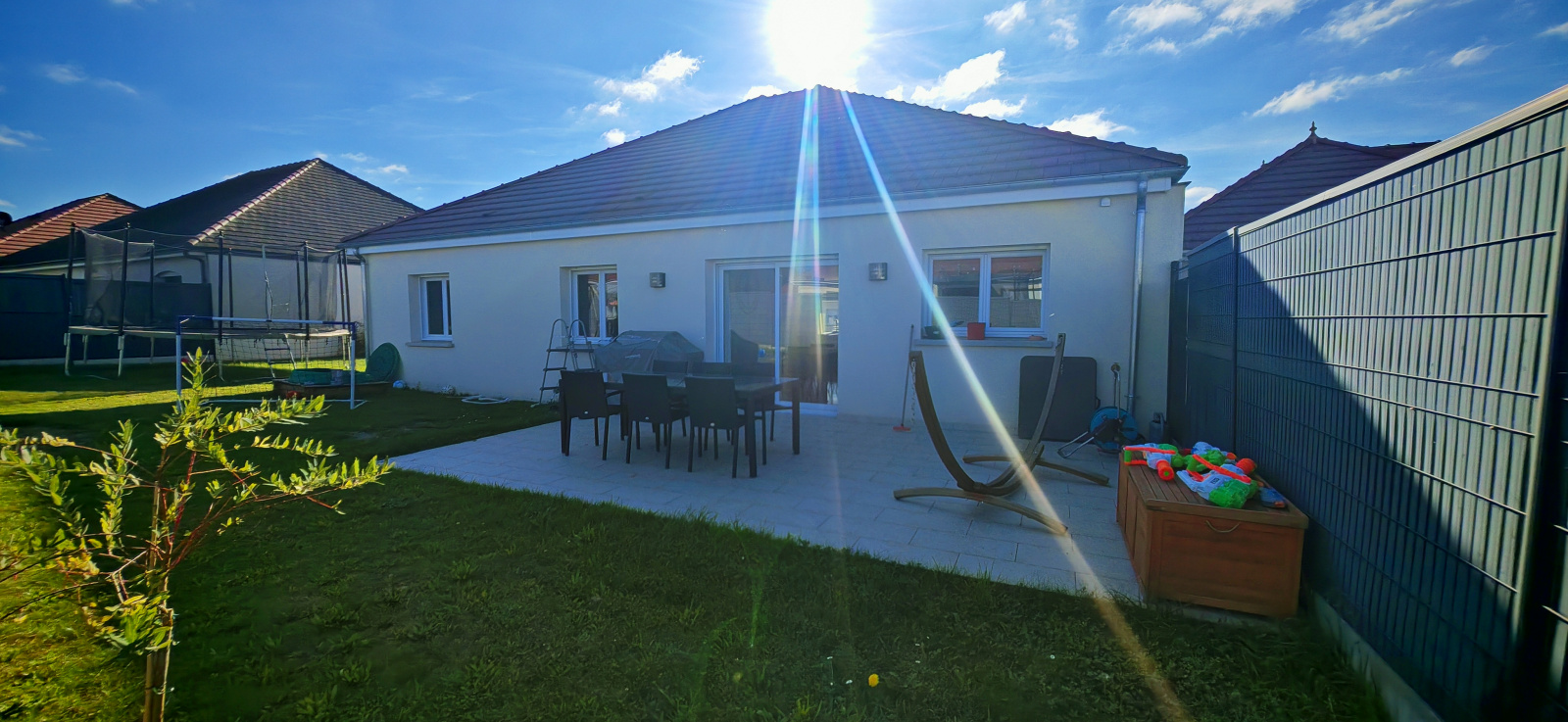 Implantée sur une parcelle entièrement clôturée de 580 m², cette propriété de plain-pied développe 117 m² habitables et ne nécessite aucun travaux.