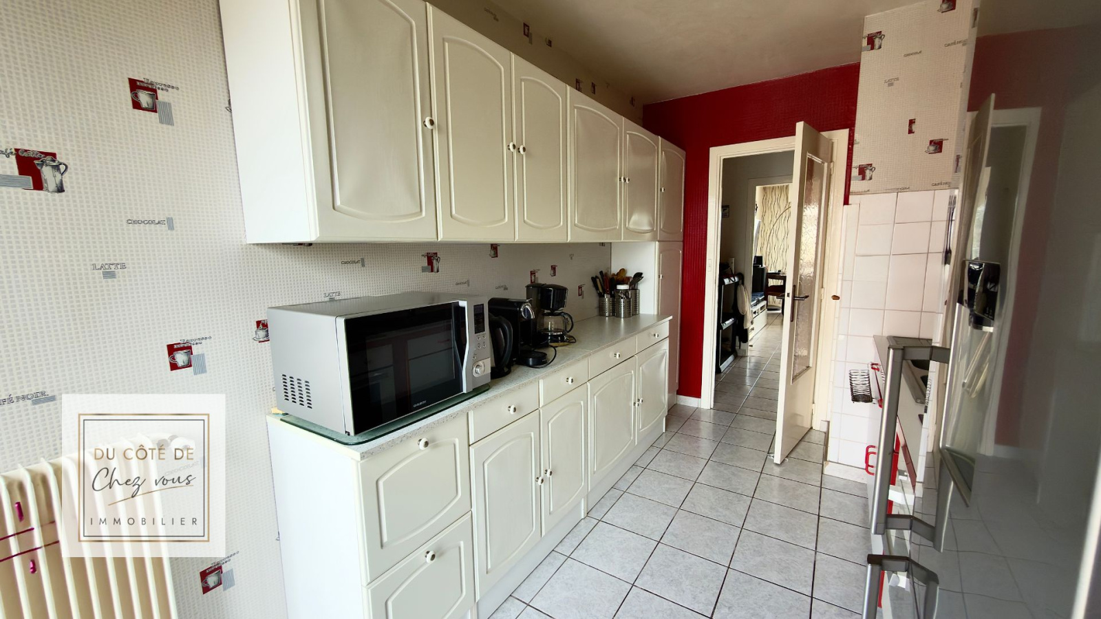 Cet appartement traversant de 68 m² offre une distribution simple et efficace : une entrée qui dessert un salon séjour lumineux, une cuisine aménagée et équipée prolongée par un cellier appréciable au quotidien, deux chambres bien distinctes, une salle d’eau, un WC indépendant, ainsi qu’une cave.
