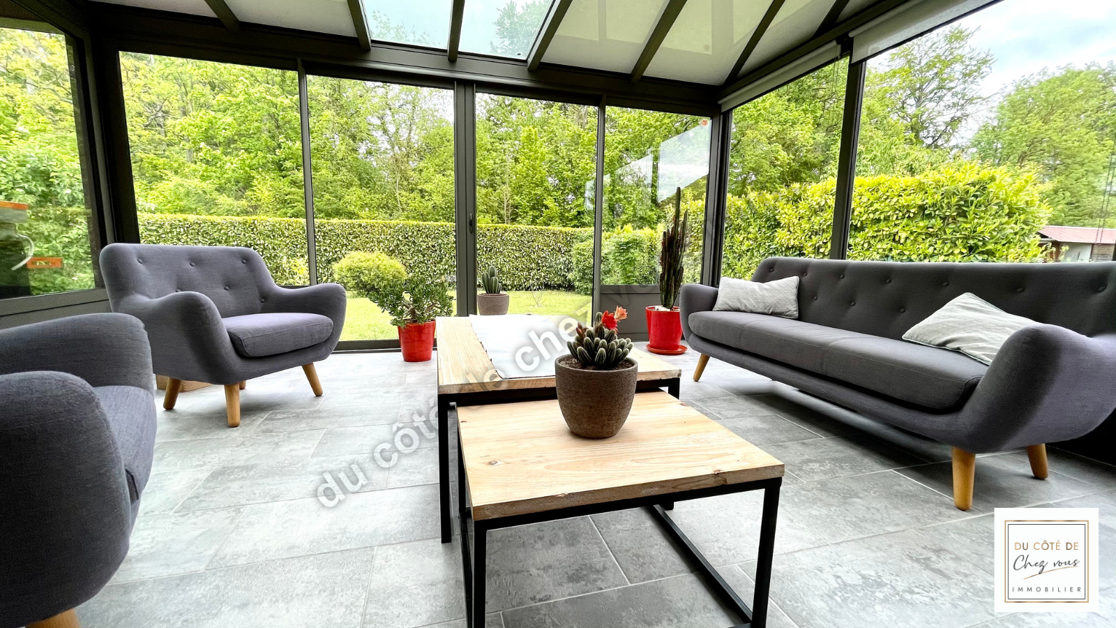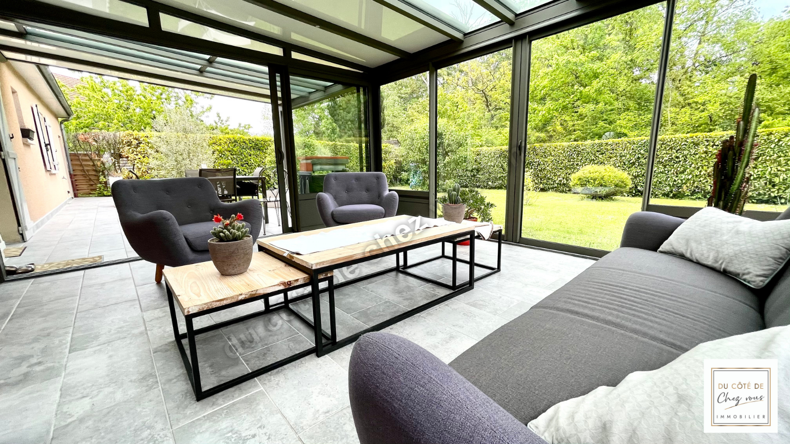 En exclusivité. Venez découvrir à Saint-Germain proche de Troyes cette exceptionnelle maison entièrement de plain-pied. Vous découvrirez immédiatement ce bel espace de vie de 50 m2 prolongé par une très grande véranda climatisée ouverte sur la nature sans aucun vis-à-vis, une cuisine dînatoire aménagée et équipée, une chambre parentale avec dressing et bureau. L’espace nuit se poursuit avec deux belles chambres, et une salle d’eau. Une grande salle de jeux et une buanderie avec douche viennent parfaire l’ensemble. L’environnement est verdoyant jouissant d'un calme saisissant loin du tumulte de la ville pourtant si proche. Pratique, cette villa dispose de nombreux rangements. Le fait d’être totalement de plain-pied peut convenir à une famille avec enfants ou à des personnes en recherche d’habitat adapté pour y évoluer sereinement. Un grand garage de 48 m2 complète ce bien sur un magnifique terrain de 818 m2. Un bien très rare, présenté par votre agence immobilière du Côté de Chez Vous, à découvrir au plus vite ! Annonce rédigée sous la responsabilité de MAJID CHABI - Tél : 06.27.11.67.39 - Agent commercial immatriculé au RSAC de TROYES sous le numéro 892 452 210