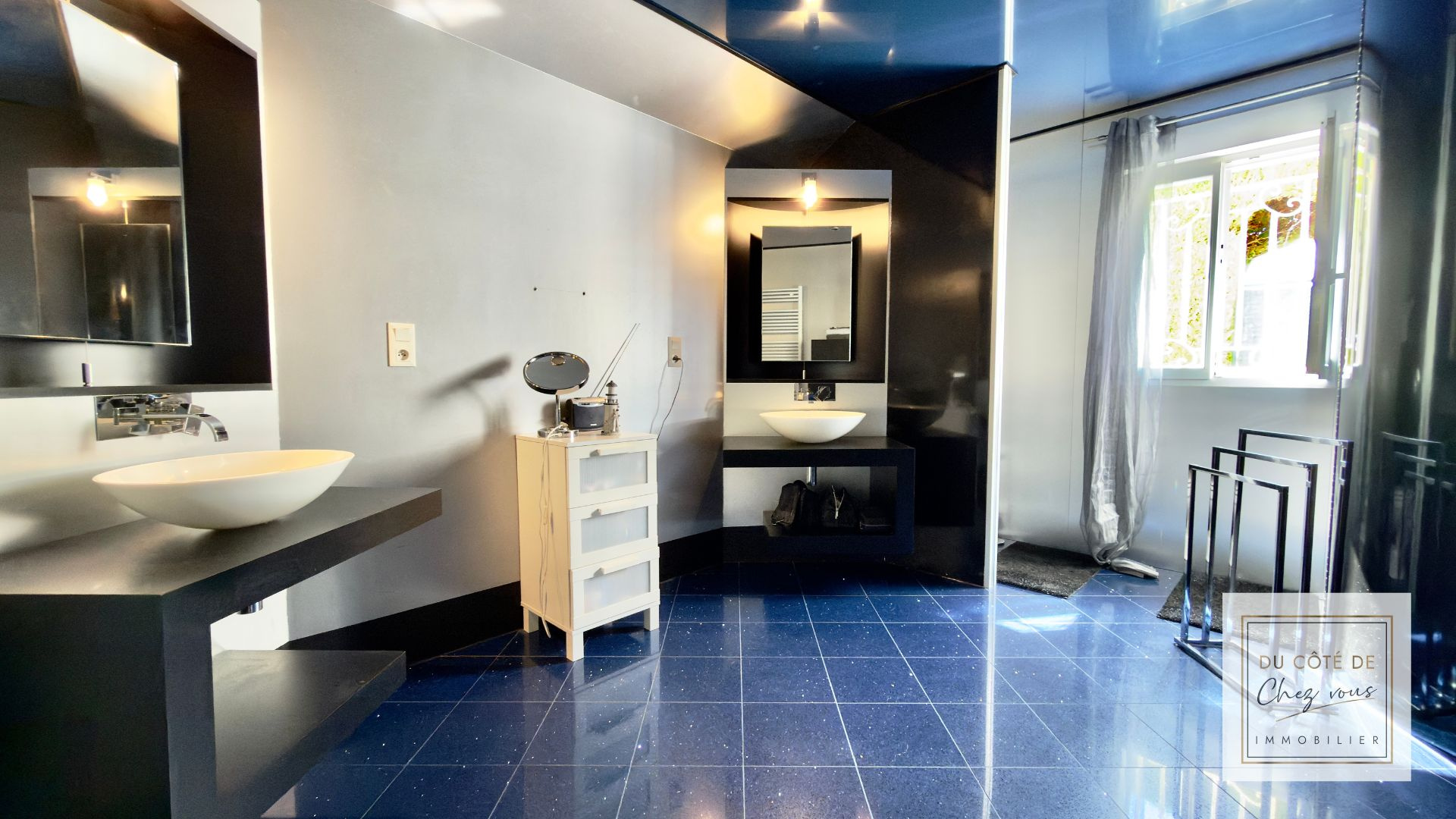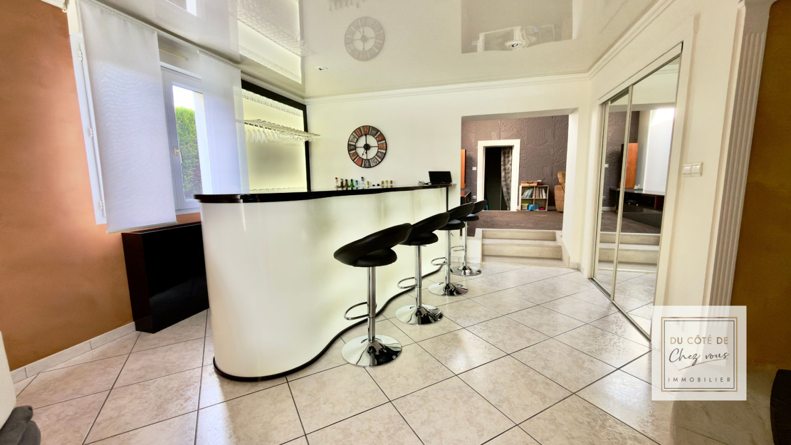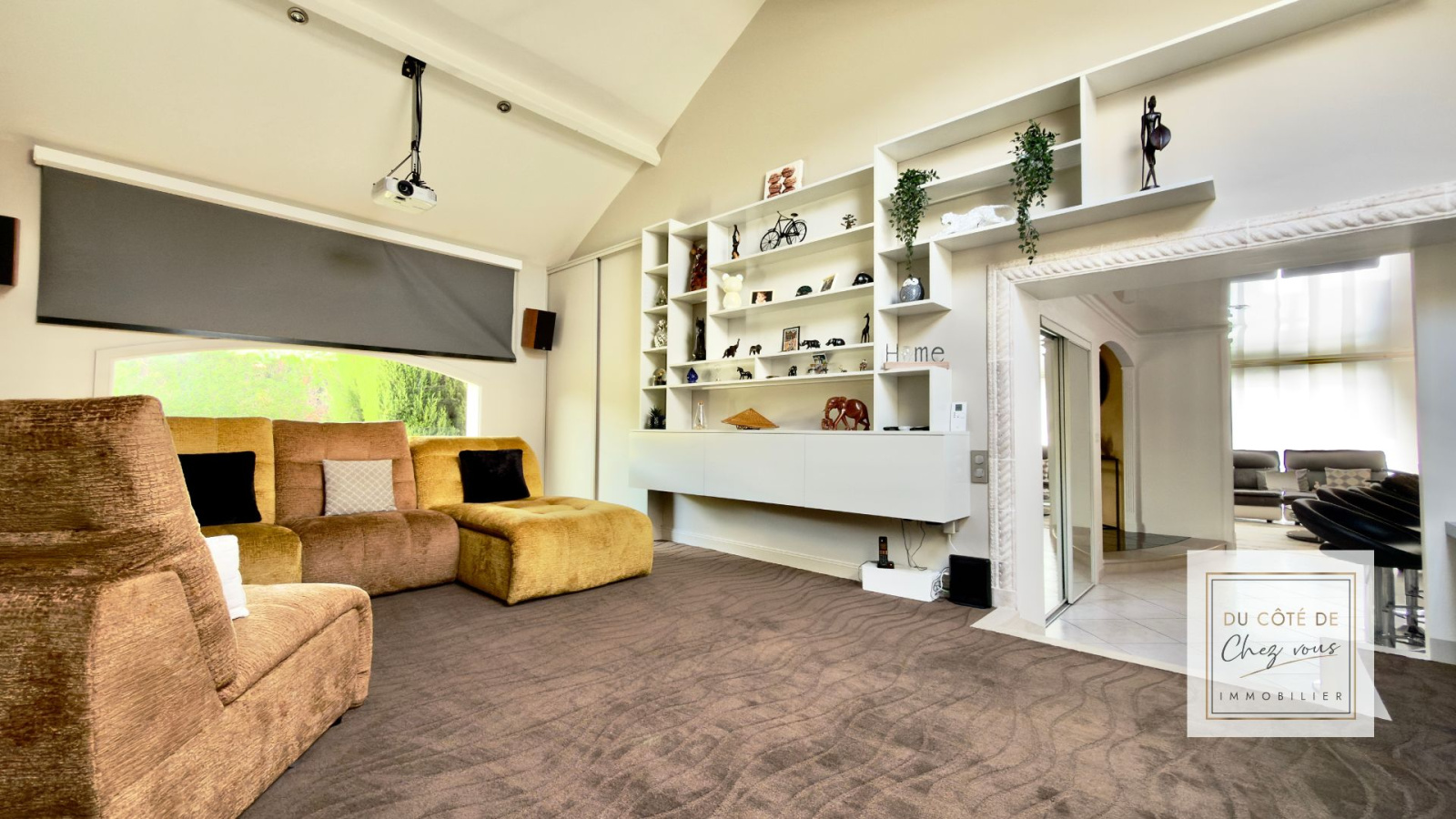 Dès l’entrée, on ressent l’espace, la lumière, la fluidité des pièces. Le séjour baigné de lumière devient naturellement le lieu des grands moments en famille. Le salon, plus intime, invite aux soirées plus calmes. La salle de cinéma promet des week-ends chaleureux, des rires d’enfants, des films partagés. La cuisine aménagée, conviviale et fonctionnelle, est pensée pour recevoir sans jamais être à l’écart.