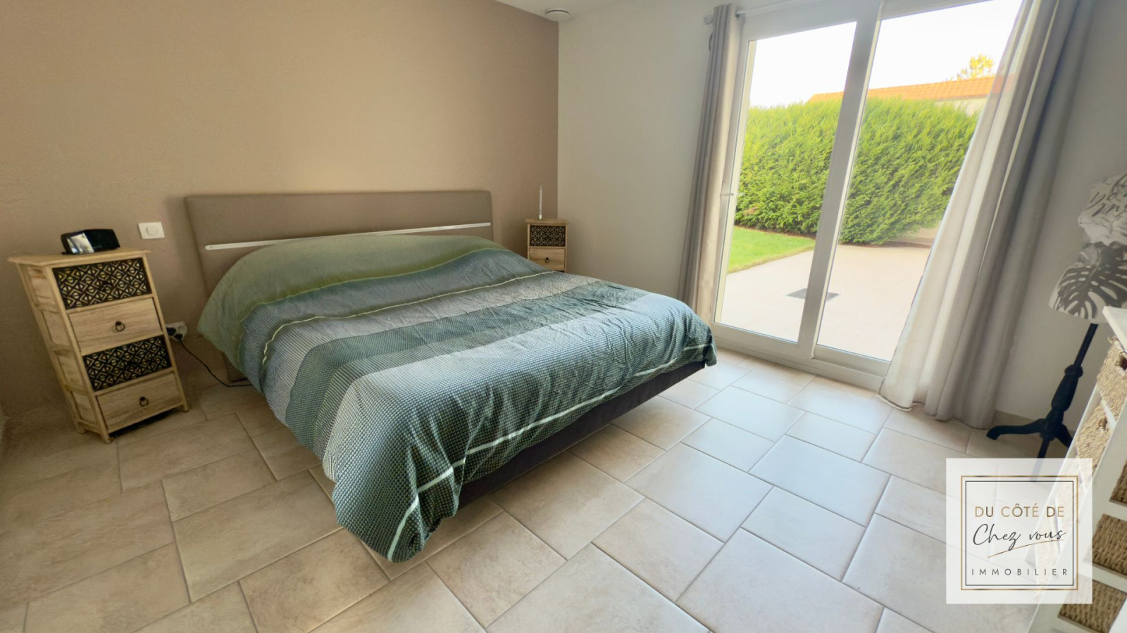 À l’arrière, la terrasse s’ouvre sur un jardin protégé, à l’abri de tous les regards. Un lieu paisible, presque confidentiel, où il fait bon vivre dehors, dès les premiers beaux jours.