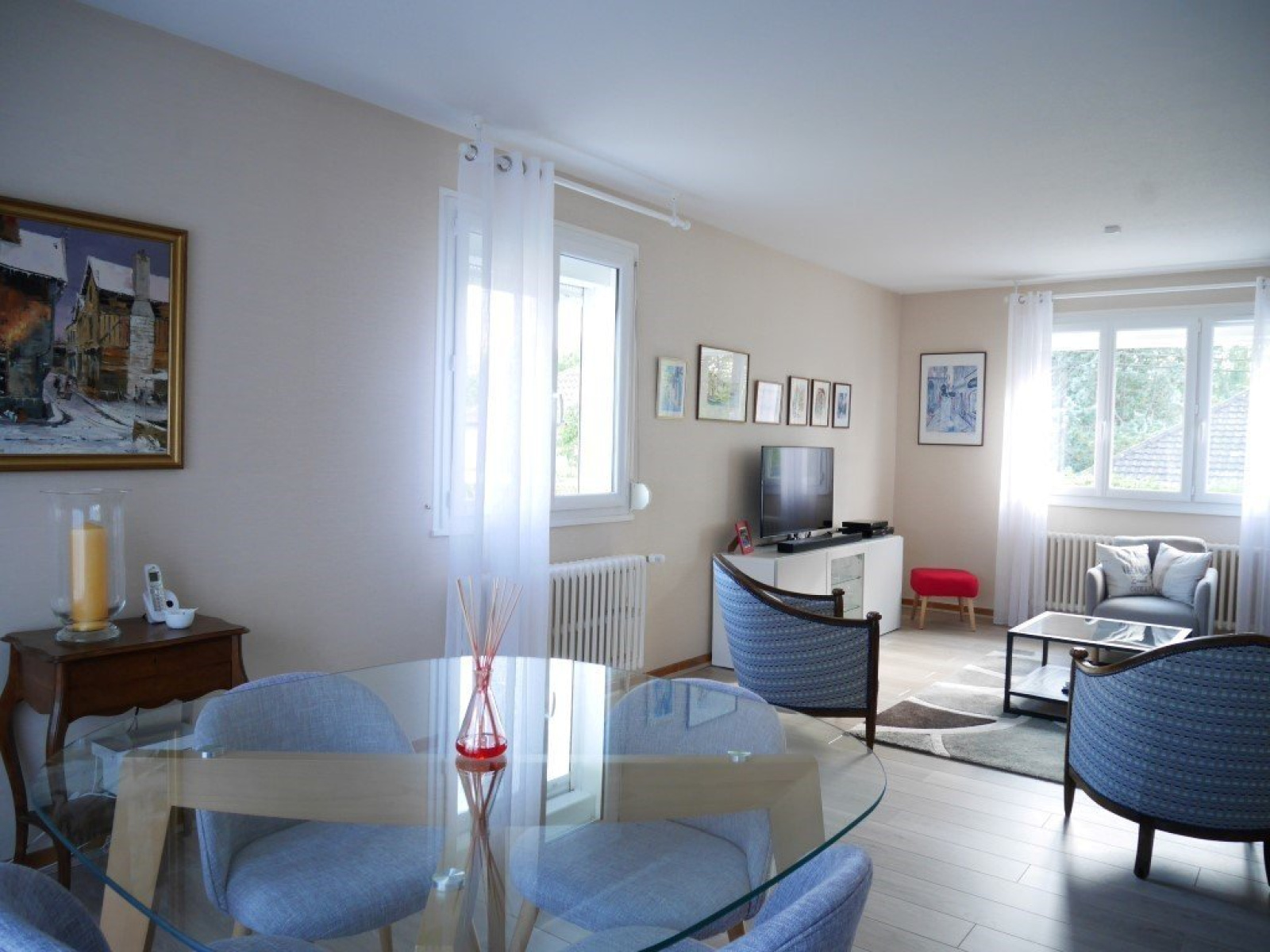 Cette belle et impeccable maison des années 70 est entièrement rénovée et idéalement située à Rosières-près-Troyes, entre Saint-André-les-Vergers et Saint-Julien-les-Villas. Elle offre une élégante entrée, un agréable et lumineux séjour, une jolie cuisine dînatoire aménagée et équipée, deux chambres et une salle d’eau en rez-de-chaussée. Le premier étage comprend trois chambres dont une de plus de 28 m2 et une salle d’eau. La maison possède également un sous-sol total avec stationnement, espace bureau et buanderie. La décoration est soignée et les prestations sont de belle facture. L’environnement est calme et familial pour ce bien reposant sur un agréable terrain de 547m2. Encore une magnifique opportunité présentée par votre agence immobilière Du côté de Chez vous ! Superbe !